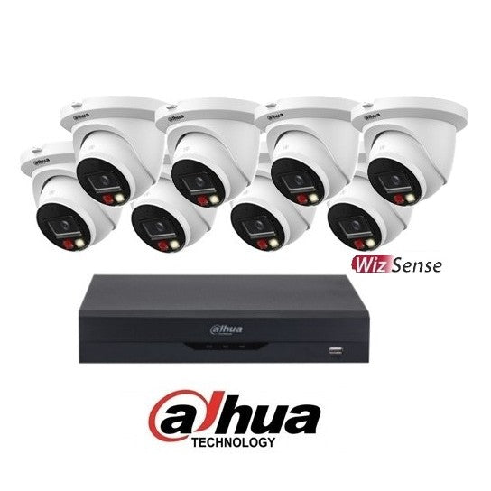 - 8x HDW1639T-A-IL 6MP IP-kamera: WizSense AI-tunnistus, Dual Light 30m, 2.8mm laajakulma (110°),