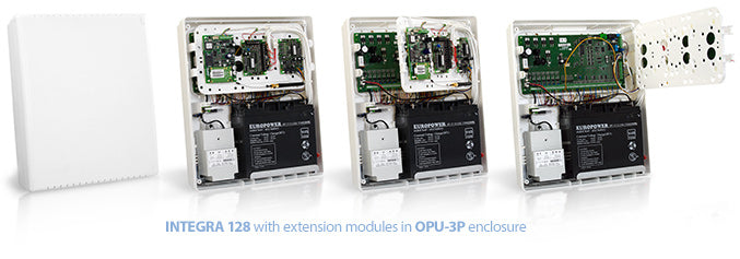 OPU-3P on Grade 3 -turvaluokiteltu muovikotelo hälytysjärjestelmän keskukselle. Tarjoaa turvallisen asennuspaikan emolevylle, laajennuskortille, virtalähteelle ja akulle.